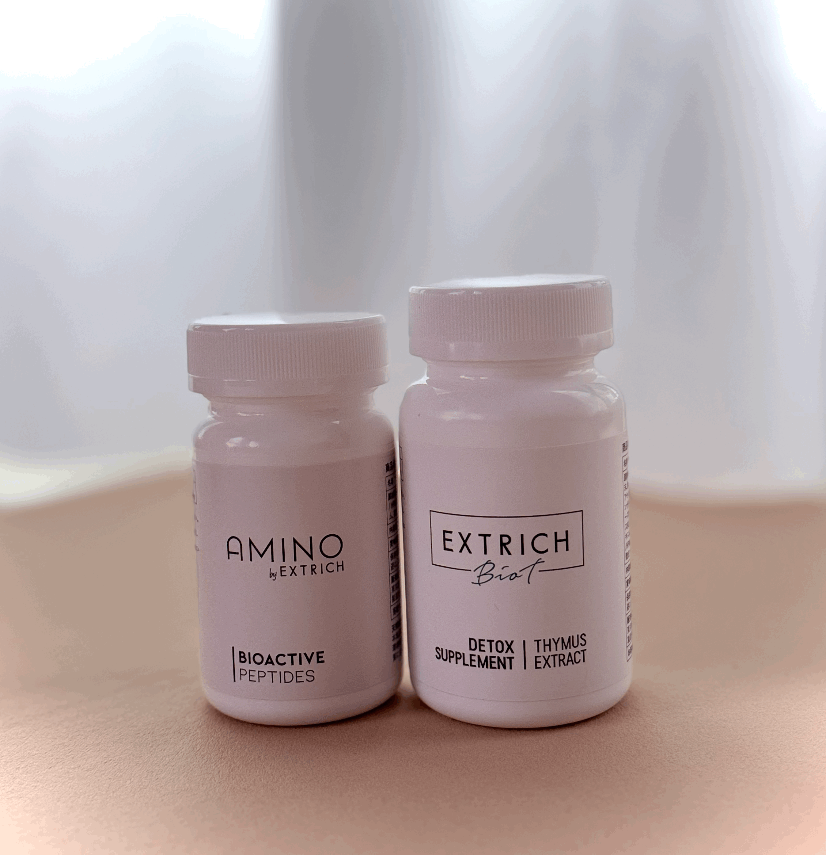 「AMINO by EXTRICH」は、**高品質なデンマーク産プラセンタ(胎盤エキス)**から抽出された、高純度アミノ酸を使用したサプリメント。独自の酵素分解技術で低分子化されており、体内への吸収効率が非常に高いのが特長です。