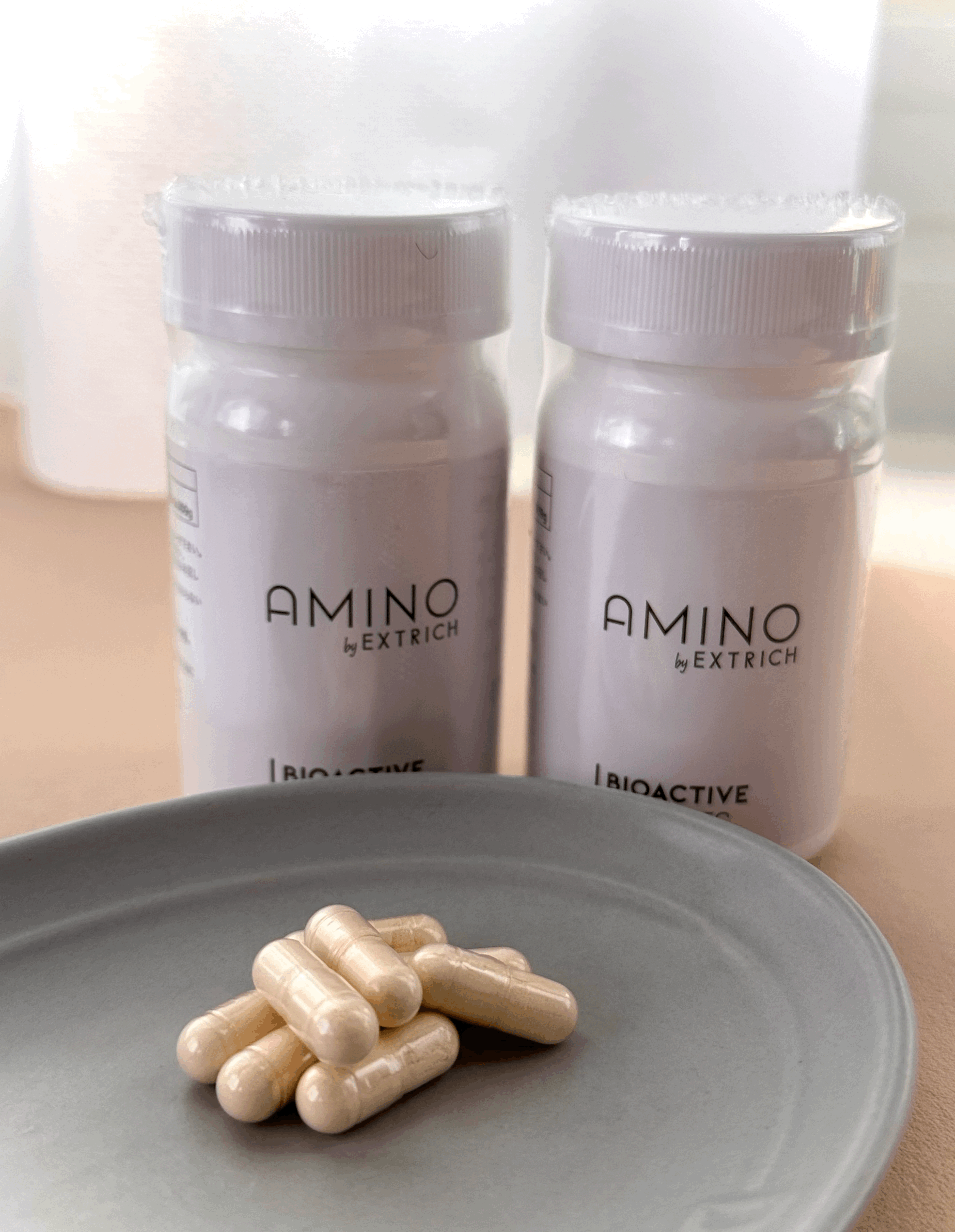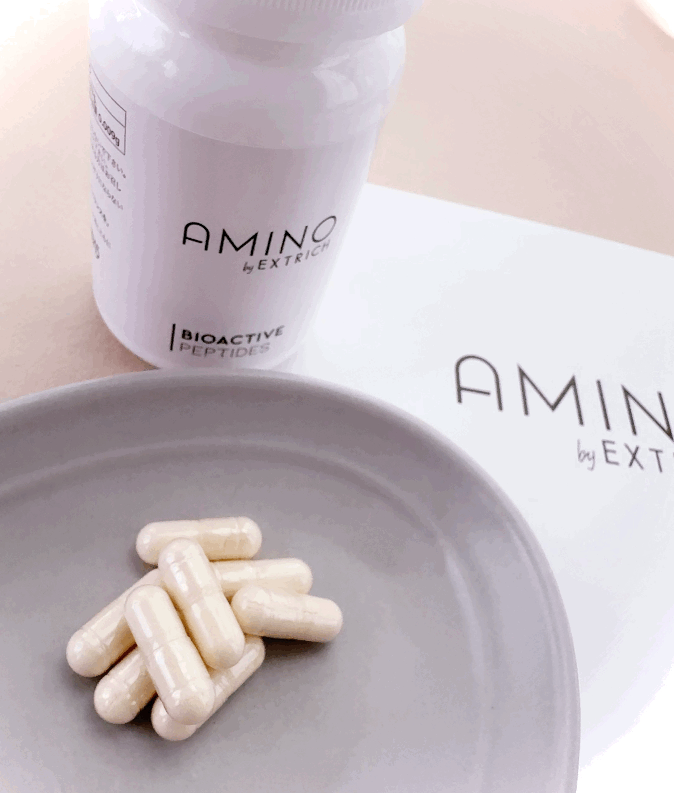 「AMINO by EXTRICH」は、**高品質なデンマーク産プラセンタ(胎盤エキス)**から抽出された、高純度アミノ酸を使用したサプリメント。独自の酵素分解技術で低分子化されており、体内への吸収効率が非常に高いのが特長です。
